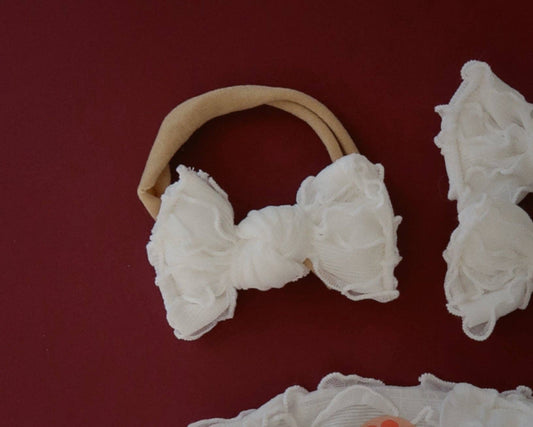 White Ruffle BloomCLIPS or Nylon Headband