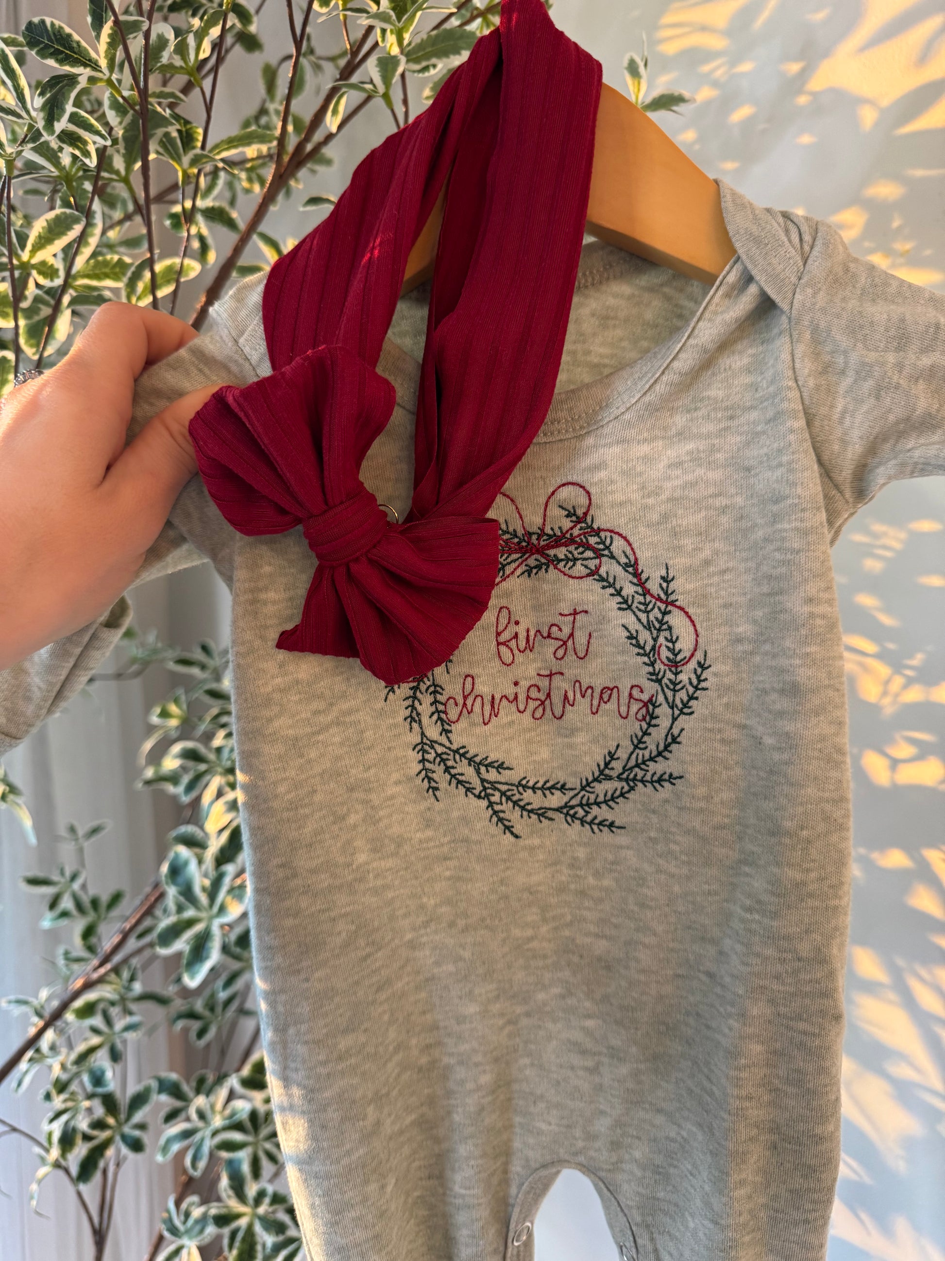 Baby Romper | Sage Green First Christmas Wreath Outfit WITH BOW