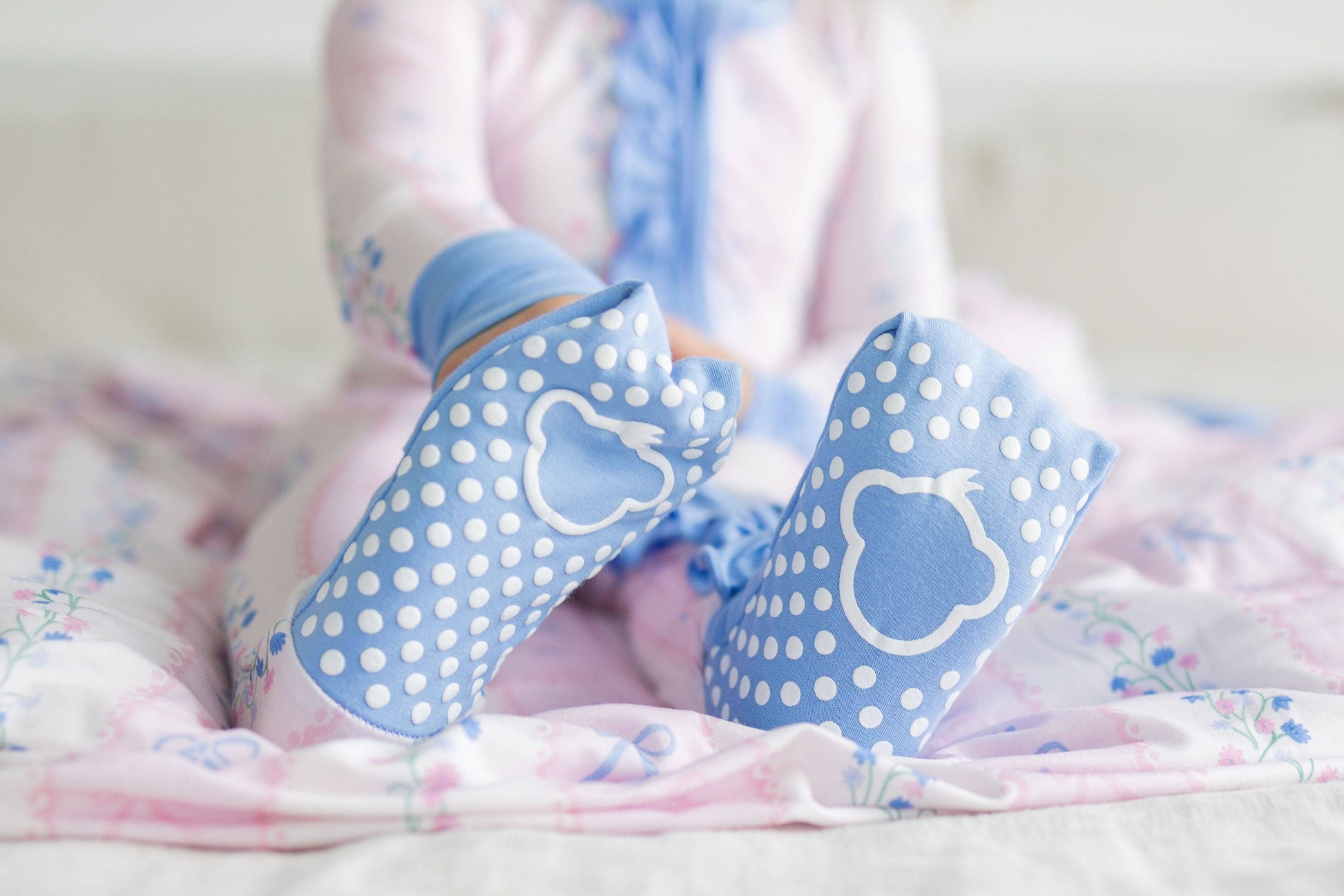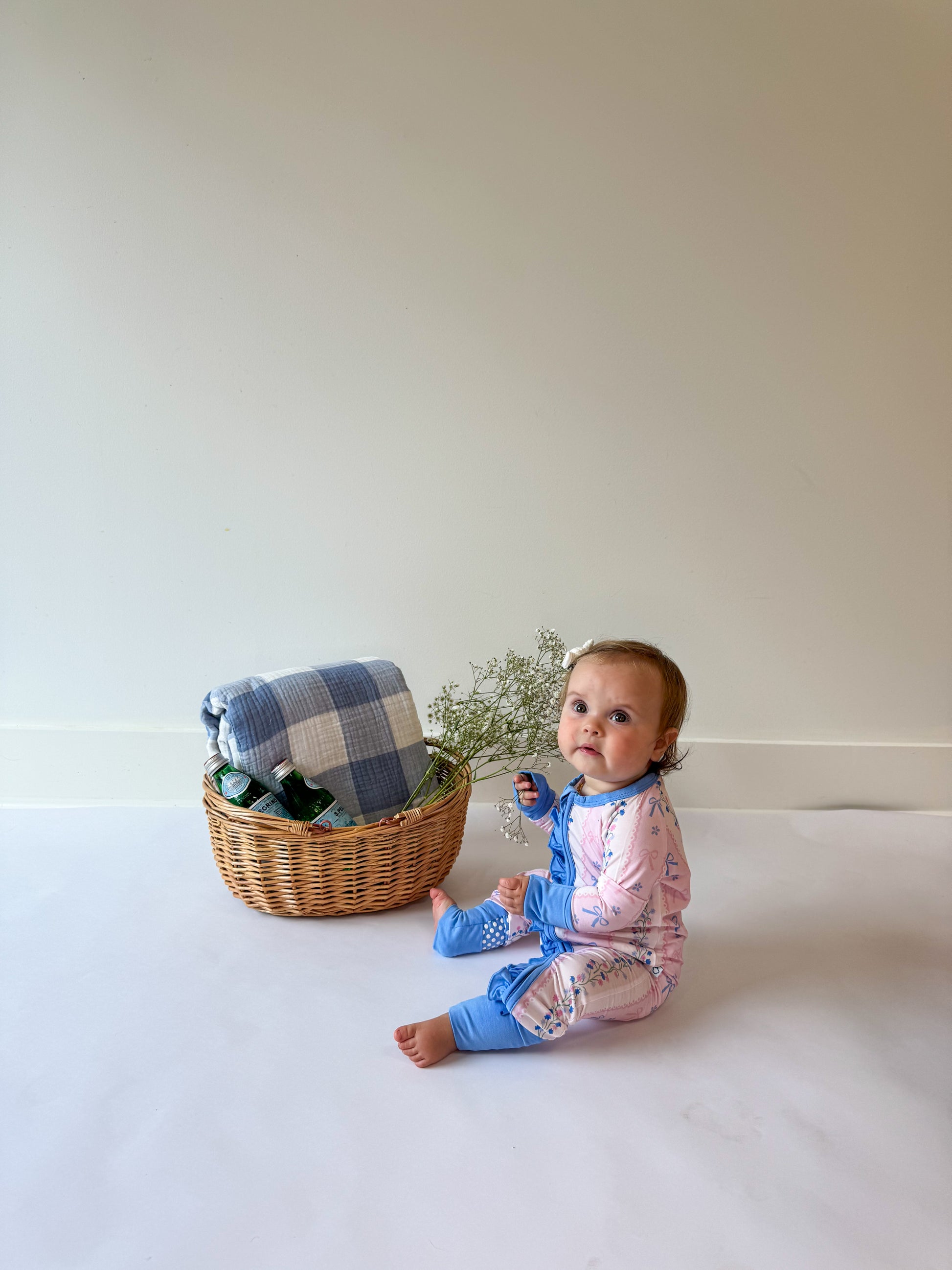 Sweet slumbers are just a zip away in our Oui Bit Sleepy romper. Crafted from our dreamy-soft bamboo fabric, this romper is breathable, stretchy, and gentle on sensitive skin. It features our vintage-inspired print with pink and blue bows, tiny florals, and scalloped stripes, all finished with a dainty ruffle that runs along the zipper for an extra touch of charm. Perfect for cozy days and comfy nights, your little one will look just as darling as they feel.