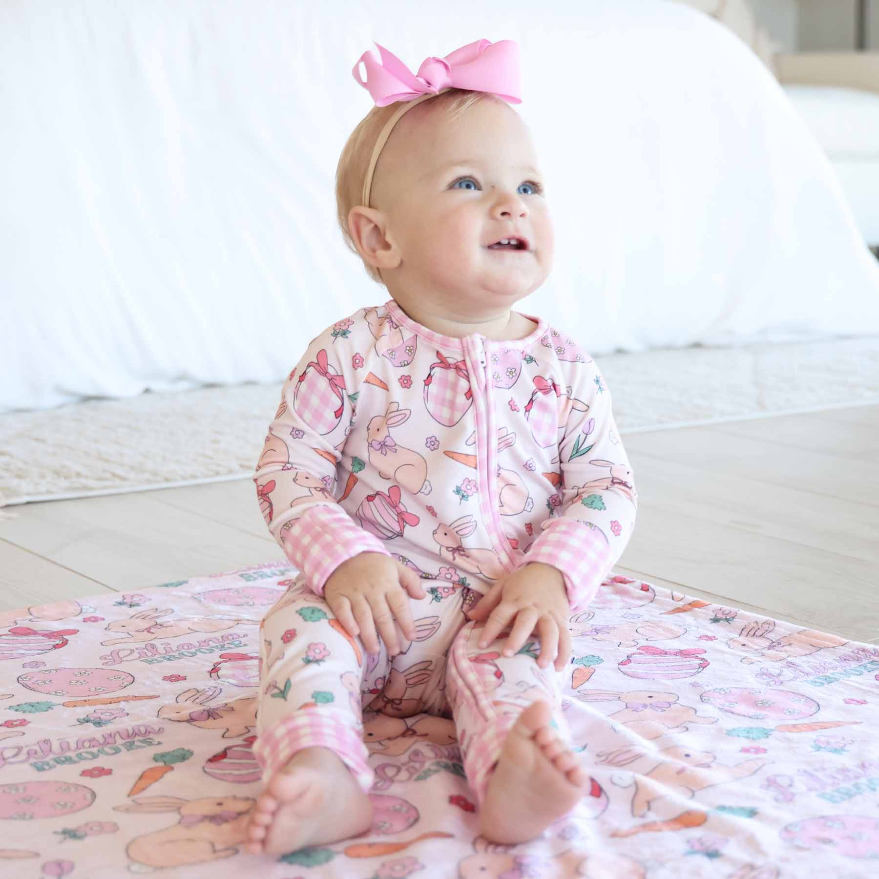 Hop into the coziest nights this Easter with the Hoppy Spring convertible zip romper in pink! Covered in the sweetest bunnies, Easter eggs, and carrots, this one-piece is made for bedtime snuggles, early-morning cuddles, and all the springtime cuteness in between. Crafted from ultra-soft, stretchy bamboo fabric, this romper keeps little ones comfy all night long. The convertible feet and cuffs let you switch between footed a