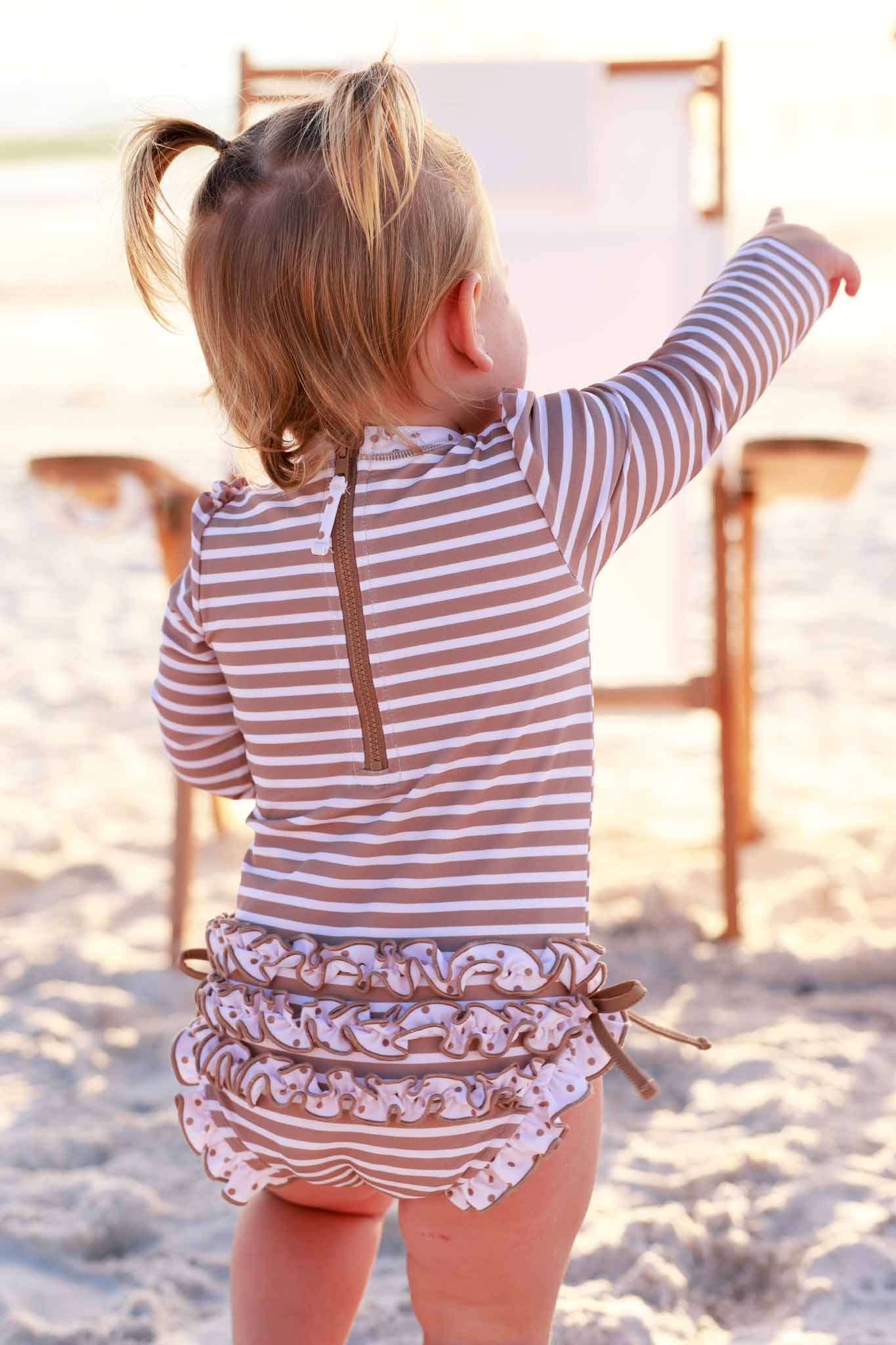 Long Sleeve Rash Guard With Ruffle Bottom | Sandy Stripes