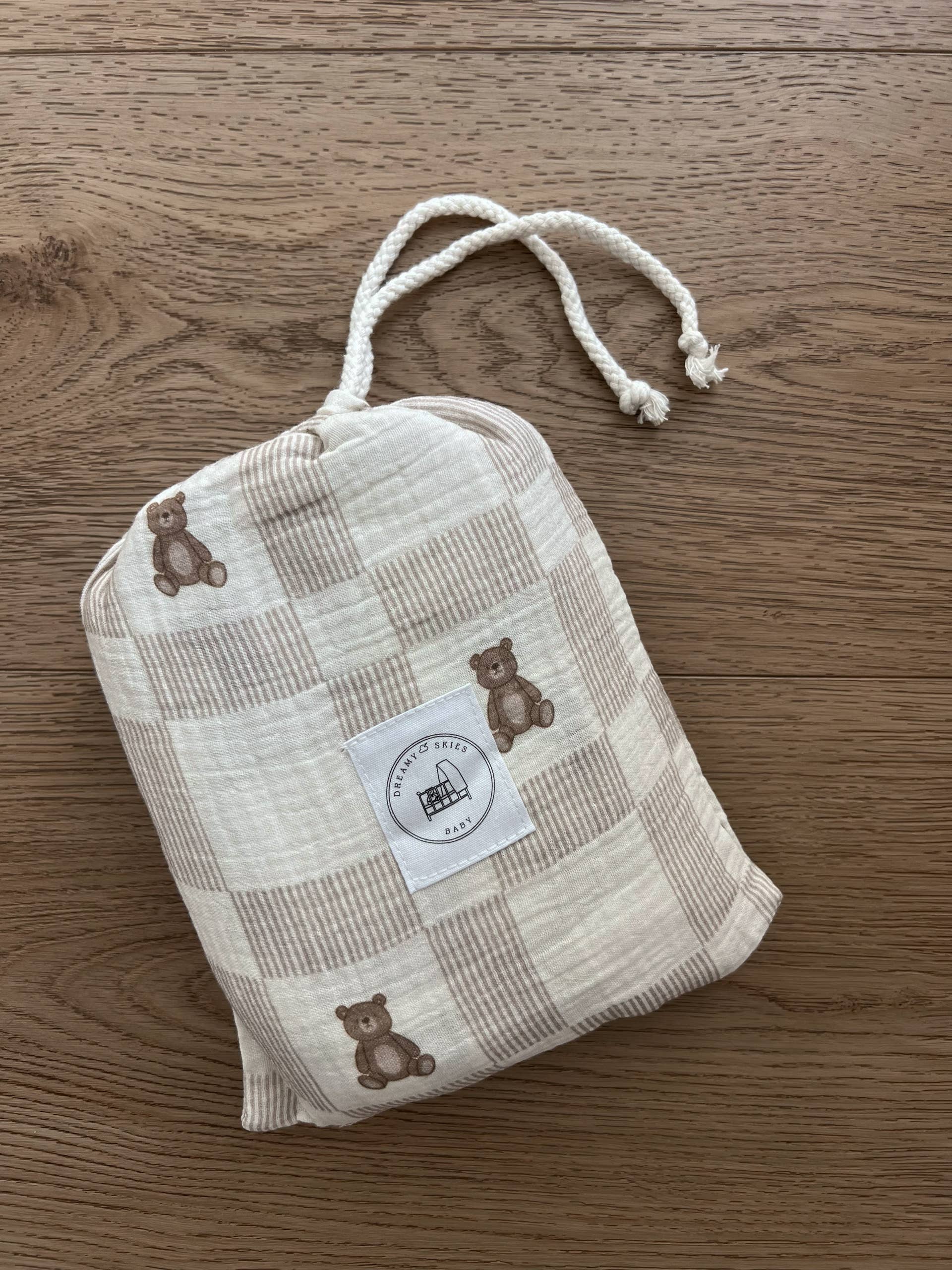Our crib sheets are 100% cotton making them breathable and soft - allowing for the best nights sleep for your little one! These are fitted sheets that fit standard crib and toddler beds. Measurements: 52 x 28 snug fit 100% Cotton. These come in a cotton reuseable cloth bag.