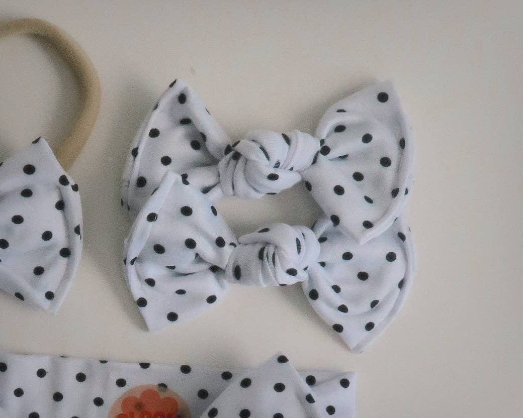 White Polka Dot Bloom Piggie Clips or Nylon Headband